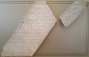 Lit.: Antoine Héron de Villefosse, Fragments d'inscription latine trouvée à Narbonne et relative à une donation de la famille Fadia, Comptes rendus des séances de l'Académie des Inscriptions et Belles-Lettres 52,5, 1908, 359-362 (Persee); Michel Christol, Notes d’épigraphie 11-12, Cahiers du Centre Gustave Glotz 21, 2010, 31 Anm. 70 (