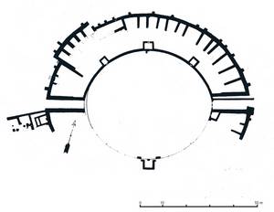 Von den beiden Amphitheatern der Stadt ist das am Nordrand des Municipiums gelegene das kleinere gegenüber dem südlich der
