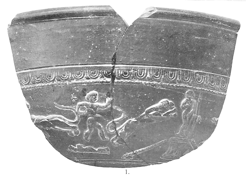 Lit.: B. Cämmerer, Jahrb. Staatl. Kunstsammlungen Baden-Württemberg 6, 1969, 286 ff.; J.W. Salomonson, spätrömische rote Tonware mit Reliefverzierung aus nordafrikanischen Werkstätten, BABesch 44, 1969, 46 Abb. 55; 105 Nr. 36A; ders., Voluptatem spectandi non perdat sed mutet: observations sur l'iconographie du martyre en Afrique romaine (Amsterdam 1979) 58 Abb. 41; Spätantike und frühes Christentum, Ausstellung im Liebighaus Museum alter Plastik Frankfurt am Main, 16. Dezember 1983 bis 11. März 1984 (Frankfurt 1983) 686 Nr. 263 (D. Stutzinger); M. Maaß, Wege zur Klassik, Führer durch die Antikenabteilung des Badischen Landesmuseums mit einem Essay über die Klassik (Karlsruhe 1985) 188 Nr. 185; J. Fabricius, Römische Villen und Luxus, Führer durch die Antikensammlungen (Karslruhe 1995) 145 Nr. 146 Abb. 133; S. Ensoli - E. La Rocca (Hrsg.), Aurea Roma, dalla città pagana alla città cristiana, Rom, Palazzo delle Esposizioni, 22 dicembre 2000-20 aprile 2001 (Rom 2000) 595 Nr. 292 Abb. (M.P. del Moro); E. Köhne, Die Gladiatorenkämpfe in der Spätantike, in: A. Demandt - J. Engemann (Hrsg.), Imperator Flavius Constantinus - Konstantin der Grosse, Ausstellungskatalog (Mainz 2007) 352 Abb. 1.
