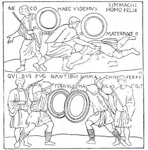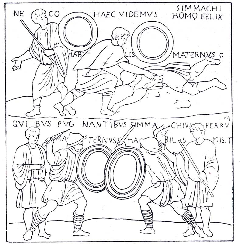 Neco // Quibus pugnantibus Symmachius ferrum misit // Maternus |(obitus) / Habilis