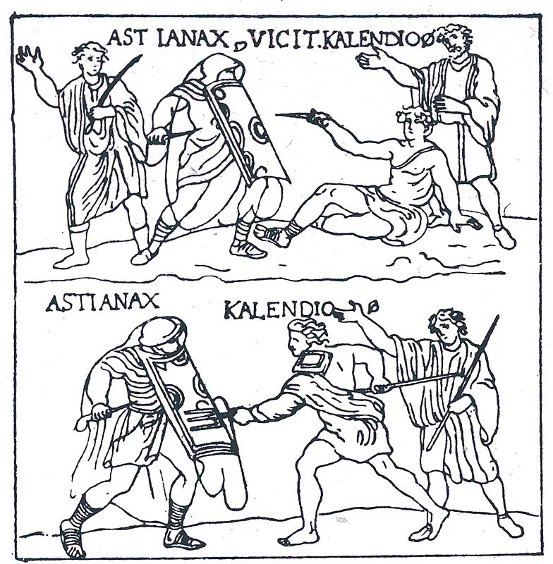 M. Junkelmann, Das Spiel mit dem Tod. So kämpften die Gladiatoren Roms (Mainz 2000) 136 f. Abb. 215-216.