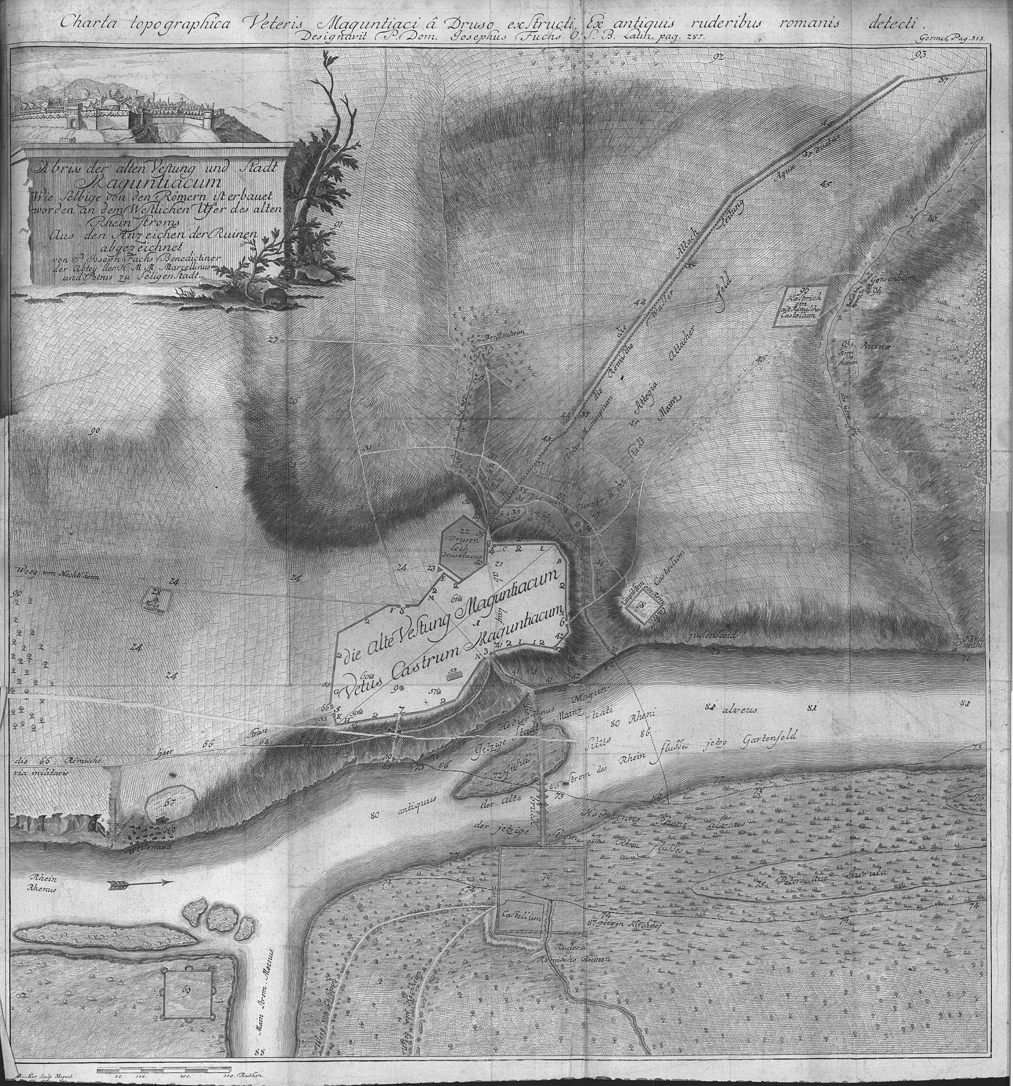 Gesamtplan des antiken Mainz bei Pater Fuchs, Alte Geschichte von Mainz, I (Mainz 1771) Plan nach S. 365.