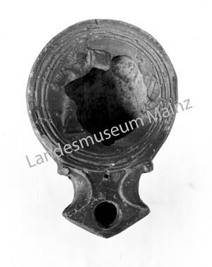Literatur: Mainzer Zeitschr. 7, 1912, 104 Abb. 15,2; A. Kirsch, Antike Lampen im Landesmuseum Mainz (Mainz 2002) 83 f. Kat.-Nr. 62; 180 M 45; Taf. 6.