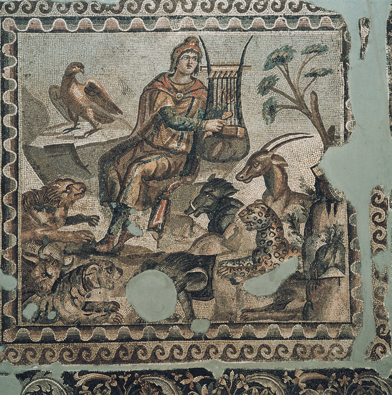 Die bildlichen Zeugnisse der römischen Kaiserzeit zeigen Orpheus vor allem als Sänger unter den friedlichen, seinem Trauergesang zuhörenden Tieren. Sein Versuch, Eurydike aus der Unterwelt zu befreien, wurde vor allem in der neuzeitlichen Rezeption des antiken Mythos bevorzugt, in der römischen Antike fand diese Episode - zumindest in der bildlichen Kunst - eine geringere Beachtung. Auf welche Weise der Kitharöde vor den Karren sensationsgieriger Unterhaltung der Massen gespannt wurde, schildert am anschaulichsten eine Stelle im dem Dichter Martial zugeschriebenen Liber de spectaculis: Dort wurde beschrieben, wie in der Arena eine Kulisse aus Felsen und einem Wald herbeigeschoben wurde und diese künstliche Landschaft mit Tieren verschiedenster Art belebt wurde. Man beachte aber die lapidare Schlußbemerkung, in der beklagt wird, dass der als Orpheus verkleidete Sänger tot und von einem Bären erschlagen dalag und dass in diesem Detail die mythische Vorlage nicht eingehalten wurde! Ein vergleichbares Veranstaltungsprogramm drücken Mosaikböden aus