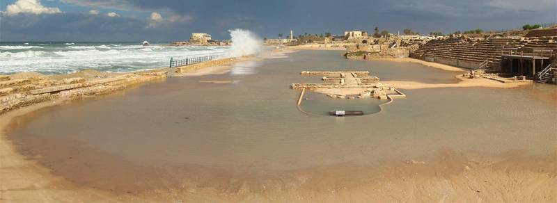 Als Hippodrom I wird hier das unmittelbar am Meer gelegene Hippodrom aus der Zeit von Herodes d.Gr. bezeichnet, welches nach letzter Übereinstimmung in der Forschung jener Bau ist, den Flavius Josephus als Amphitheater bezeichnete.