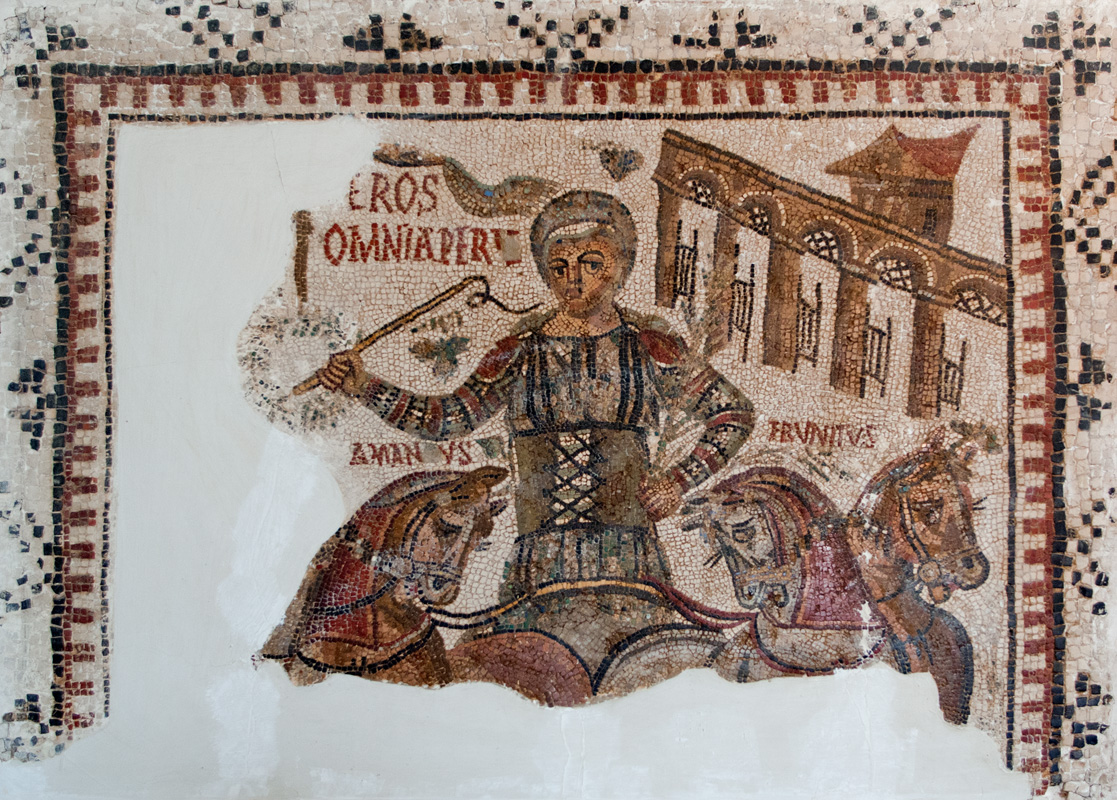 Mosaik mit dem Rennfahrer ...eros; Tunis, Bardo-Museum: